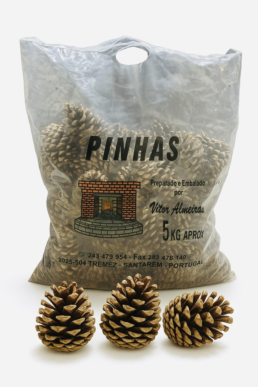 Saco de pinhas secas que pode usar em decoração ou para fomentar o fogo na sua lareira.